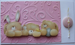 I've been inspired by all of the Beatrix Potter shows on TV, and just had to get out my CD's again to craft with the adorable Peter Rabbit. A while ago I started taking decoupage sheets to bed with me to cut up while I watch the TV in the evening. I popped all of the pieces into envelopes not to lose them. This meant I could get on and put the card together fairly quickly. I've done this for many of my CD's, I've a basket full of envelopes holding cut up decoupage! Planning of working my way through them.